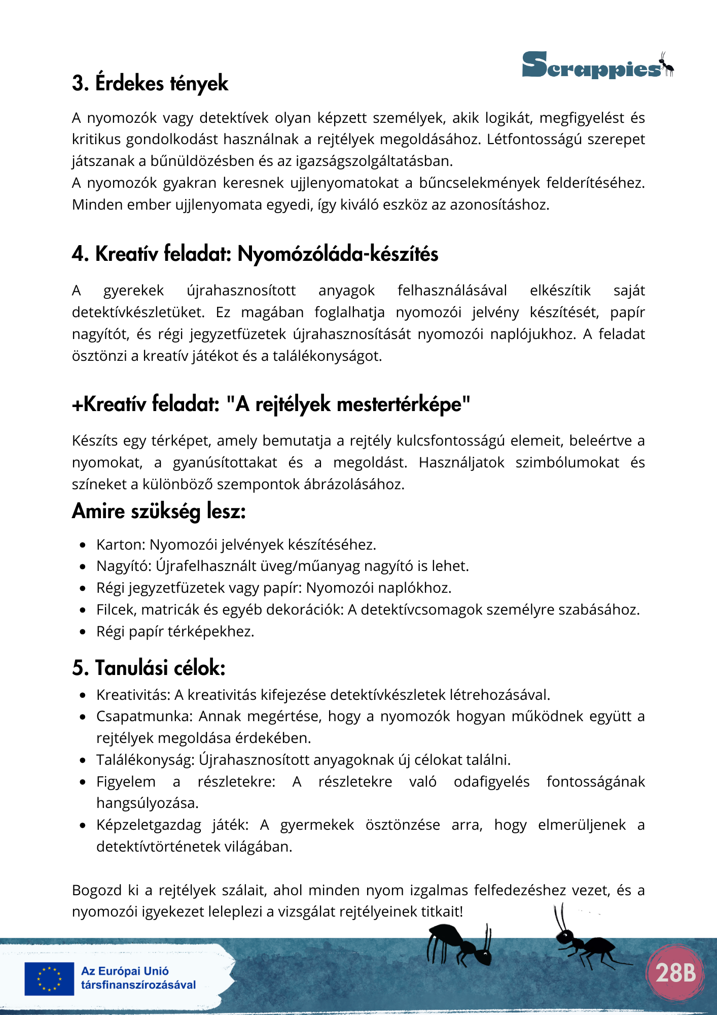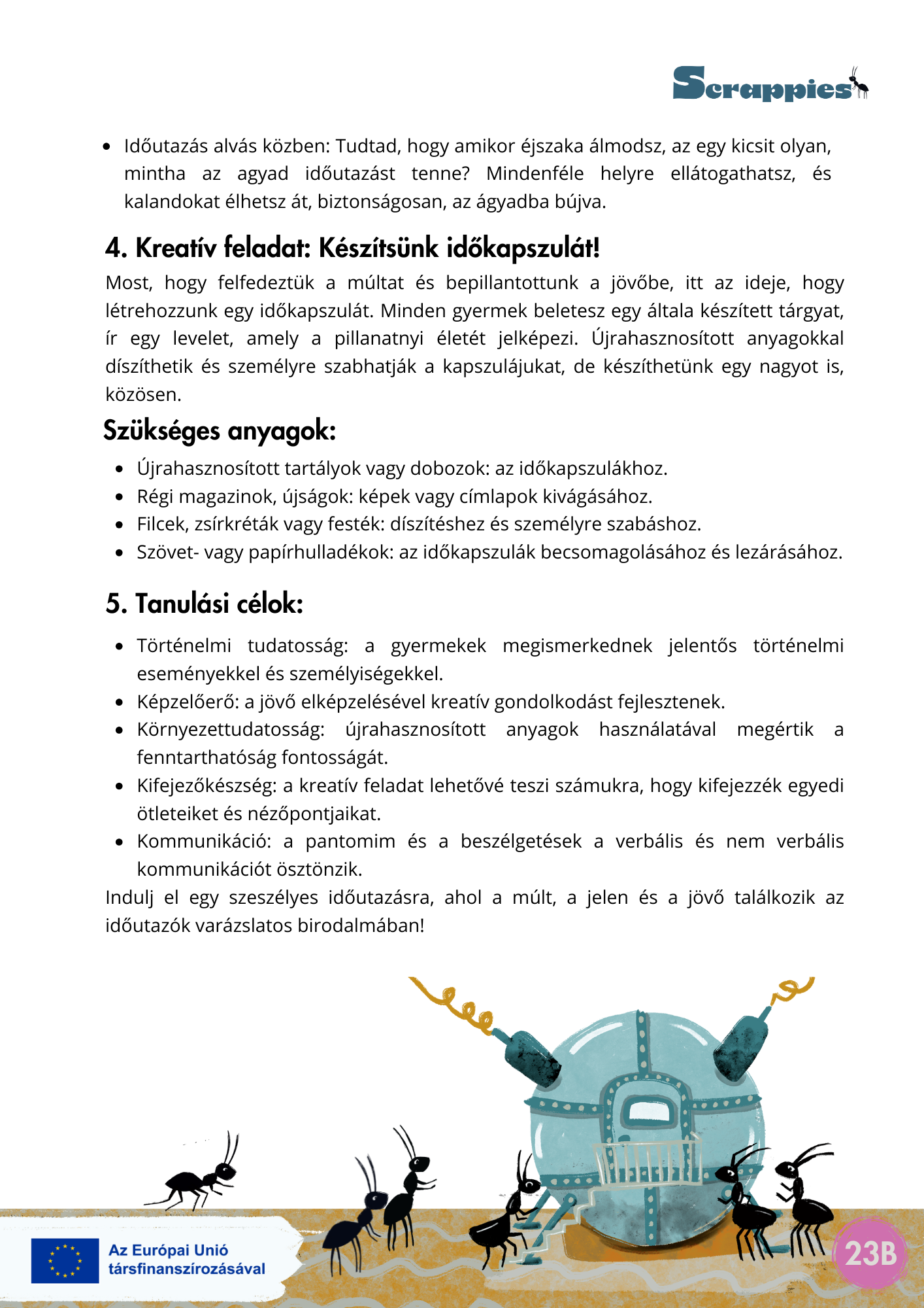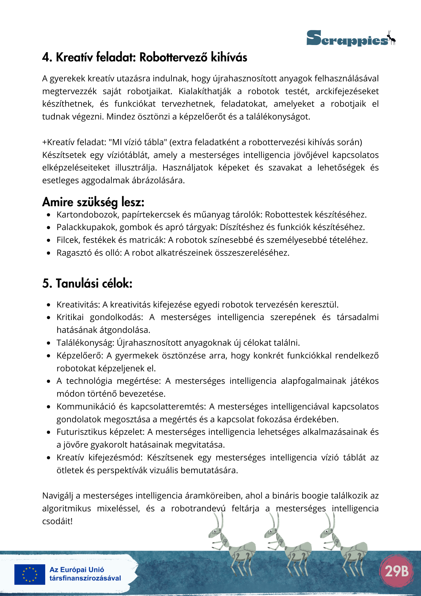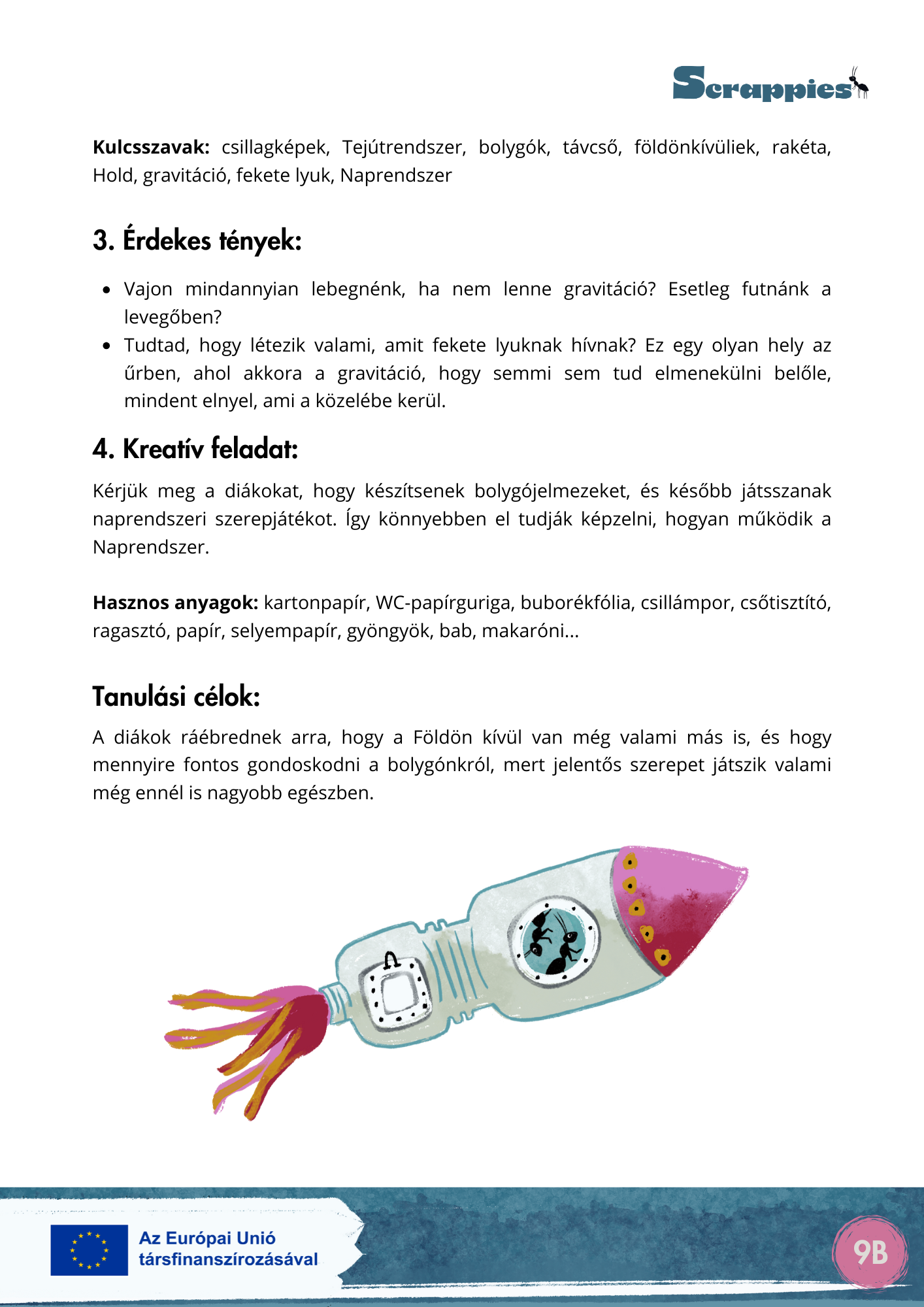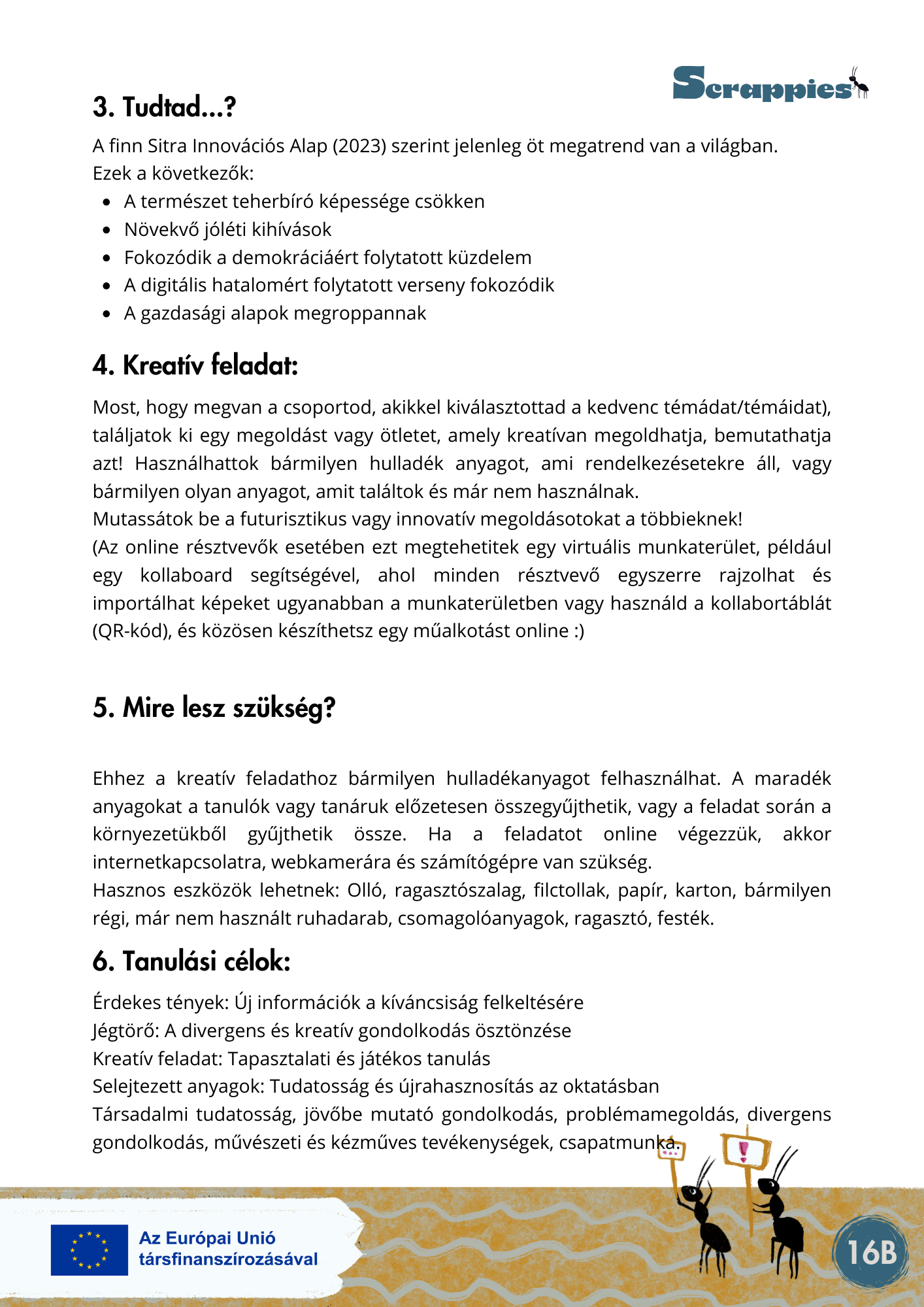 A Scrappies projekt központi üzenete az, hogy a fenntarthatósági szemlélet nemcsak a tananyagban, hanem a tanítás módszertanában is megvalósítható – kreatívan, örömmel, kevés költséggel.
